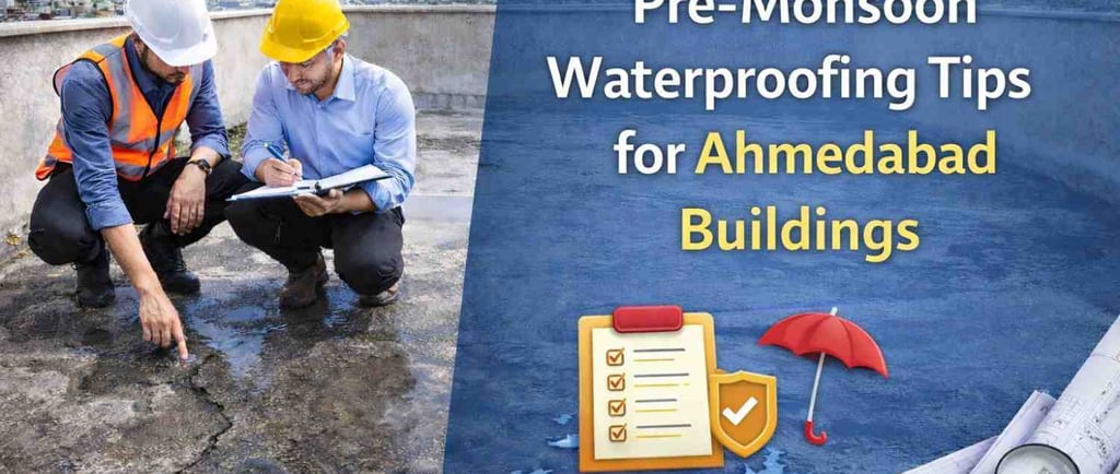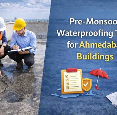 Prepare Ahmedabad buildings for monsoon with expert pre-monsoon waterproofing tips. Prevent terrace leakage, dampness & seepage with timely protection.